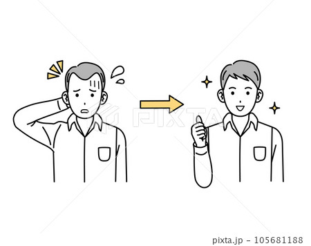 抜け毛に驚く男性のイラスト・コロナ後遺症・円形脱毛症