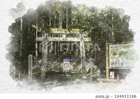 水彩画風 郡山城址 毛利元就火葬場跡 広島県安芸高田市