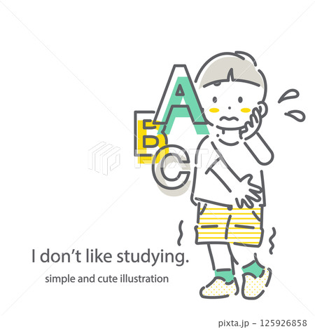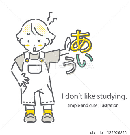 国語の勉強を毛嫌いする小学生 シンプルでかわいい線画イラスト