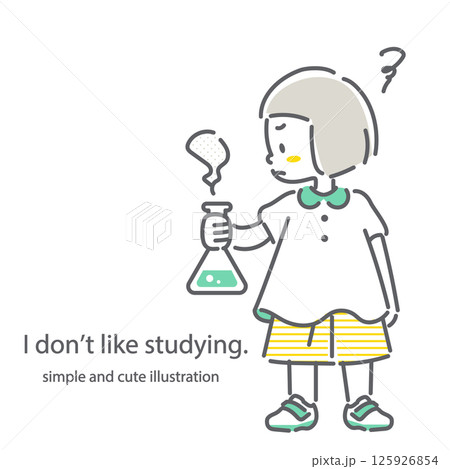 理科の勉強を毛嫌いする小学生 シンプルでかわいい線画イラスト