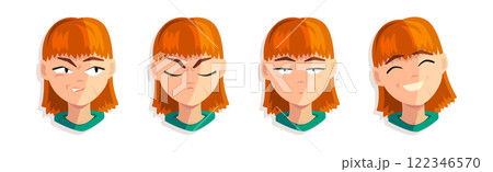 Redhead Woman Head and Avatar with Emotion Vector Set