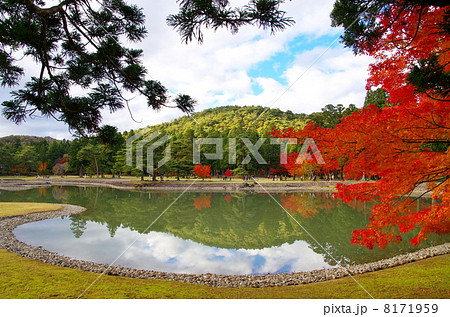 世界遺産 毛越寺の浄土庭園 紅葉の秋(岩手県平泉町)