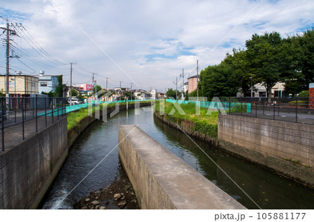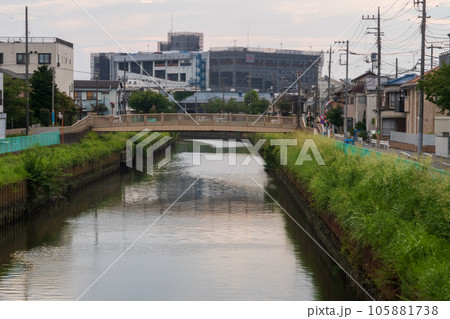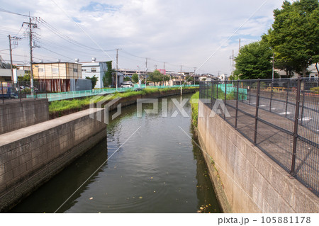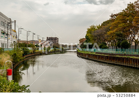 埼玉県草加市瀬崎 谷塚 毛長堀 毛長川 水面 秋 昼間 横