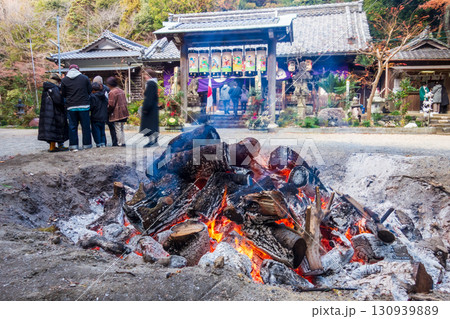 【正月・初詣風景】神社の焚き火・お焚き上げ