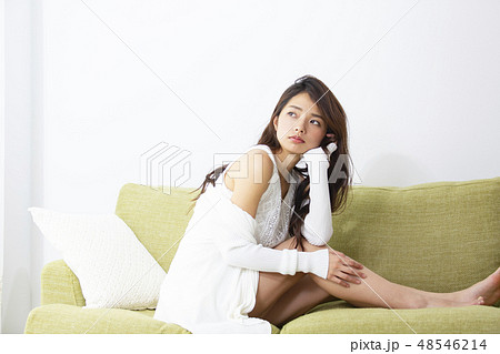 ソファに座る女性