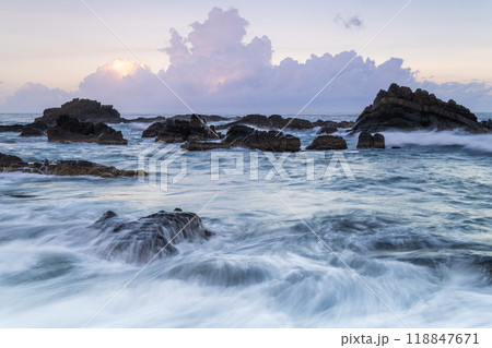 Tranquil Twilight Tide: Rocky Cove at Sunset. Toucheng, Yilan, Taiwan.