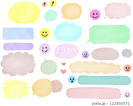 水彩・カラフルな吹き出しと顔文字のセット