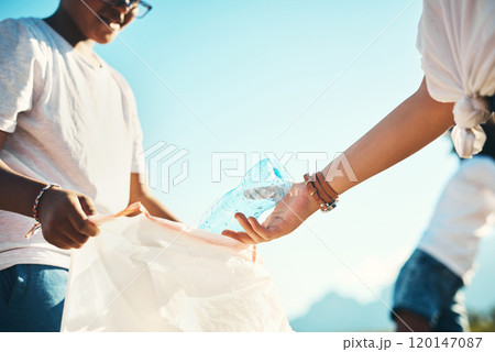 Recycle the way to a brighter day. Shot of two teenagers picking up litter at summer camp.