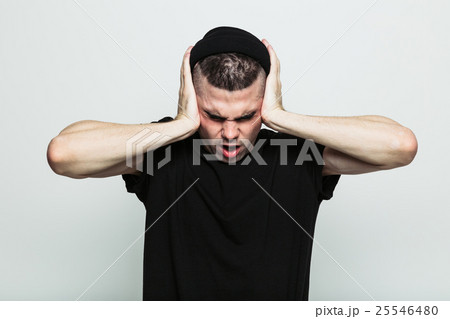 (全身正面)真っ青な顔色で不機嫌になりながら男性
