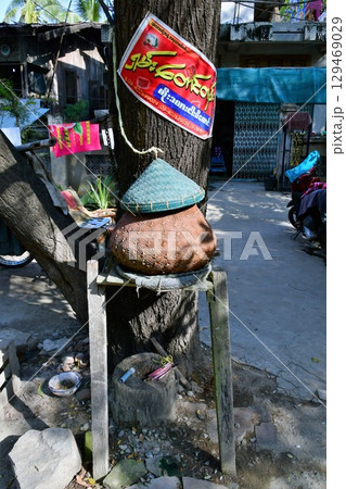 ミャンマー、マンダレー、水飲み場、水がめ