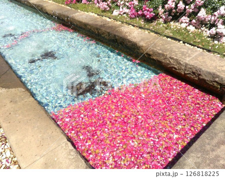 横浜 イタリア庭園の噴水に浮かぶバラの花びら 横 2025年6月1日