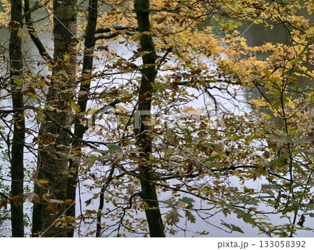Typical autumn landscape in Trebonsko region, Velky Sustov pond near Suchdol nad Luznici, Southern Bohemia, Czech Republic