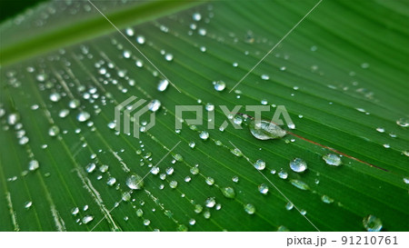 葉の水滴 霧雨 クローズアップ