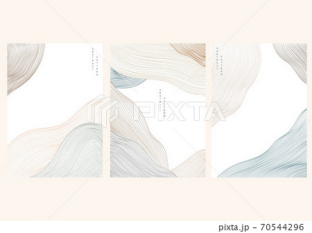 Japanese landscape background set cards, old line wave pattern vector illustration. Vintage luxury Abstract template geometric wavy texture. Mountain layout design in oriental style, vertical brochure