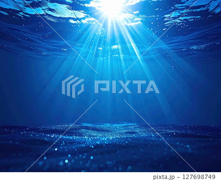爽やかなブルーの水中に立ちのぼる泡(AI生成画像)