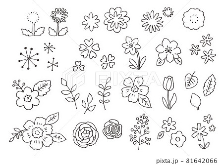 手描きの花イラストのセット(モノクロ)