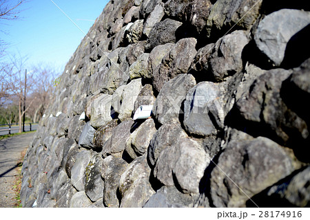 岩の擁壁と青空