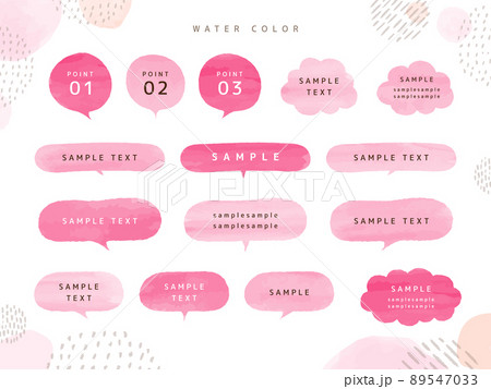 ピンクと黄色のシンプルな水彩風の吹き出しセット