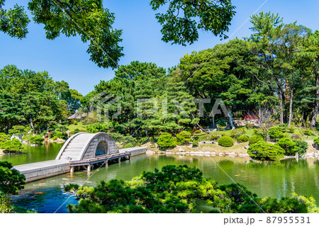 広島縮景園の池と石橋