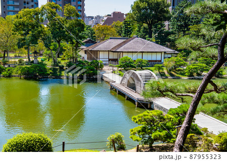 名勝縮景園の夕照庵