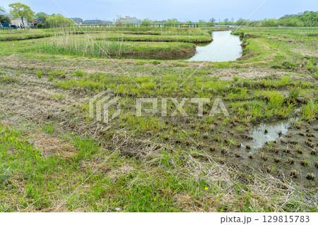 岐阜県海津市 春のアクアワールド水郷パークセンターにある堀田の雰囲気を再現した再生堀田