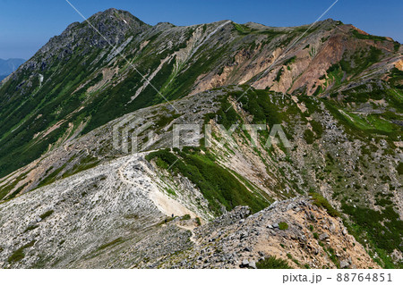 水晶小屋付近からの水晶岳への稜線
