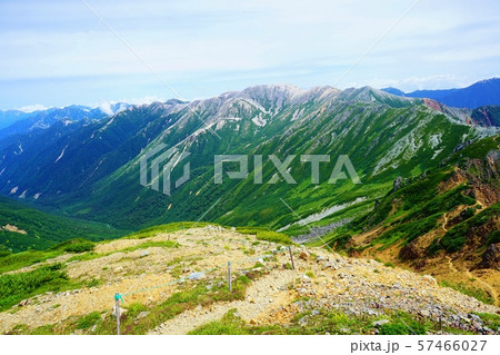 雄大な景色 槍ヶ岳を背景に北アルプスを縦走