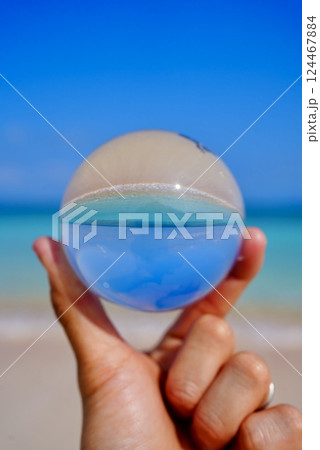 砂浜とクリスタルボールにうつる海と空