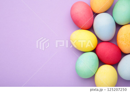 Multi color eggs on purple background.