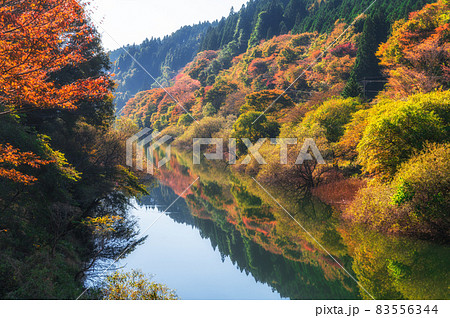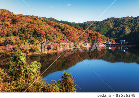 茨城県北茨城市 水沼ダムの紅葉とリフレクション