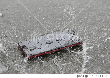 水たまりに落ちたスマートフォン