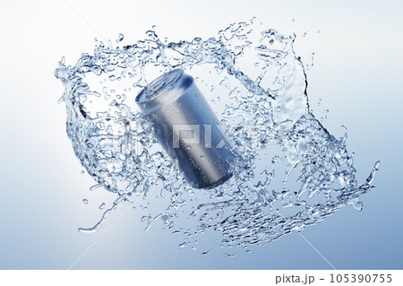 缶に衝突して弾け飛ぶ水の3Dイラスト