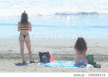 水着の女性【2人・ビキニ・かわいい・おしゃれ・ギャル・日焼け・夏休み・海水浴・女子大生】