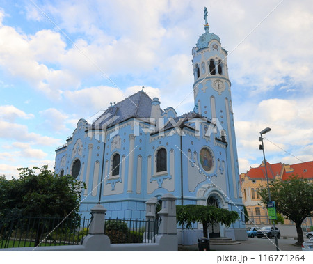 中央ヨーロッパのスロヴァキア 青空のブラチスラヴァの青の教会(ブルーチャーチ)、聖アルジュベタ教会