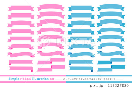 あしらい・タイトルに使いやすいシンプルフラットな春のリボンフレームベクター素材_ピンク水色