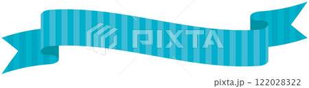 カーブのついたストライプ模様のシンプルなリボンの単品イラスト6(青)