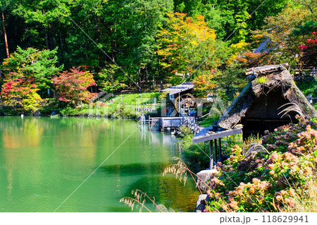 飛騨の里五阿弥池と合掌造りの古民家