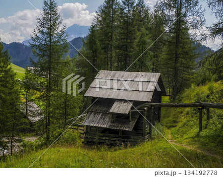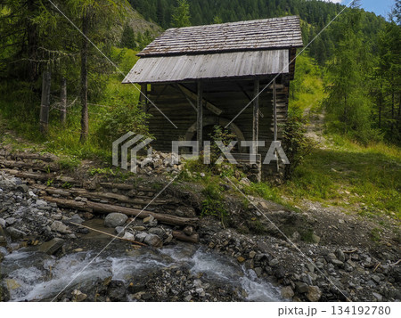 Watermill in dolomites mountains detail