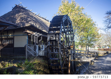 水車と藁葺き屋根