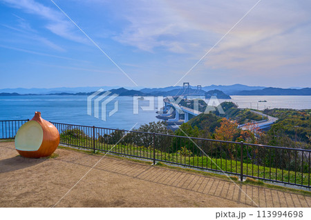 兵庫県南あわじ市の道の駅から大鳴門橋と鳴門海峡、徳島方面の眺望