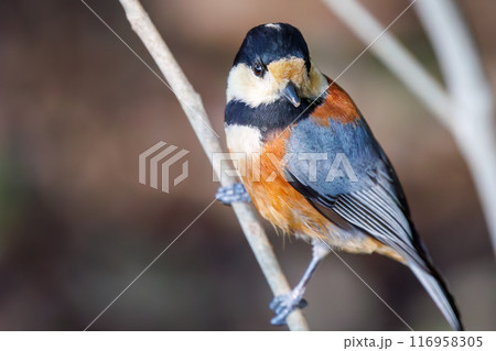 餌を探す可愛いヤマガラ(シジュウカラ科)。 日本国東京都文京区、小石川植物園にて。 2024年新春
