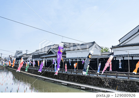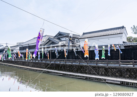 栃木県栃木市 巴波川周辺の「蔵の街」の風景と沢山の鯉のぼり