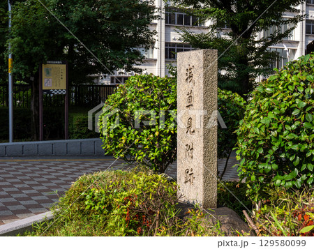 神田川に架かる浅草橋付近に建つ「浅草見附跡」の石碑(東京都台東区)