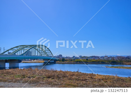 冬の神奈川県川崎市多摩区登戸新町と多摩水道橋方面を見る
