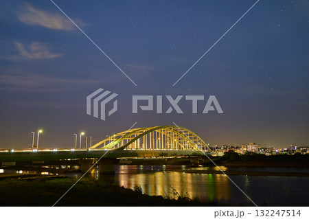秋の南西側の星空と神奈川県川崎市多摩区登戸新町と多摩水道橋方面を見る