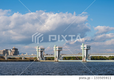 洗堰(水門) 越後平野を水害から守る大河津分水(新潟県燕市大川津)