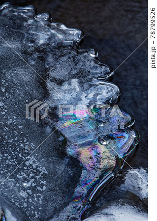 八ヶ岳連峰・オーレン小屋付近の沢の虹色の氷