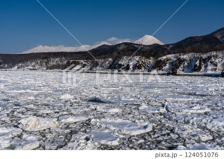 知床半島ウトロ漁港に接岸したオホーツク海の流氷