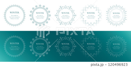 素材_フレームのセット_雪の結晶と光をモチーフにした冬の飾り枠。高級感のある囲みのデザイン。字無