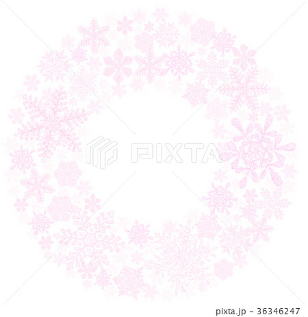 ピンク色の雪の結晶と光の楕円形のフレーム